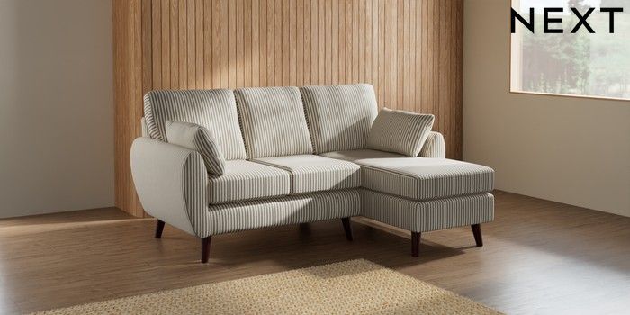 7.2.10 Buy Wilson Small Sofa Chaise - Right Hand Chenille Stripe Moss Green Retro Tapered - Dark Brown from the Next UK online shop Click here to use our accessible website