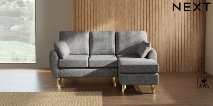 7.3.1 Buy Wilson Small Sofa Chaise - Right Hand Chunky Boucle Easy Clean Light Grey Metal Tapered - Gold from the Next UK online shop