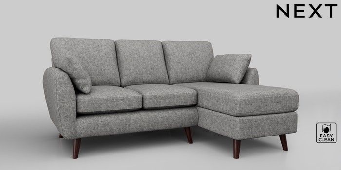 6.12.1 Buy Wilson Small Sofa Chaise - Right Hand Chunky Boucle Easy Clean Light Grey Retro Tapered - Dark Brown from the Next UK online shop Click here to use our accessible website