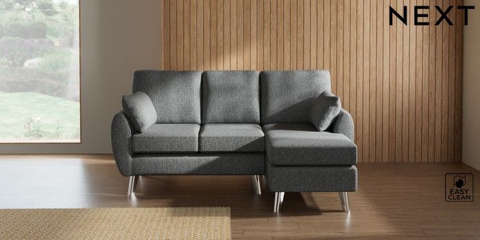 7.3.1 Buy Wilson Small Sofa Chaise - Right Hand Chunky Boucle Easy Clean Mid Grey Metal Tapered - Chrome from the Next UK online shop