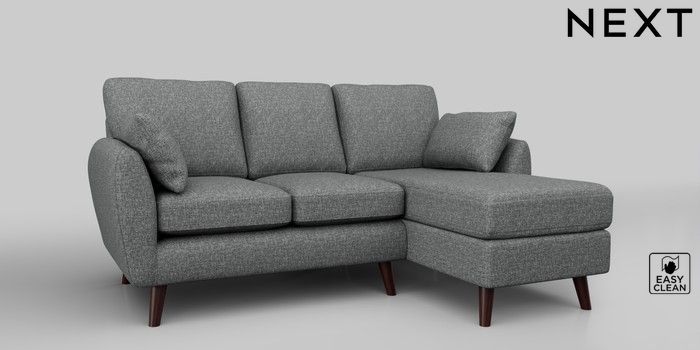 6.12.1 Buy Wilson Small Sofa Chaise - Right Hand Chunky Boucle Easy Clean Mid Grey Retro Tapered - Dark Brown from the Next UK online shop Click here to use our accessible website