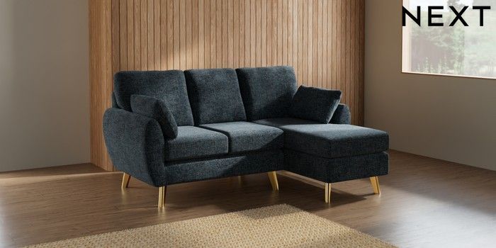 7.3.1 Buy Wilson Small Sofa Chaise - Right Hand Chunky Chenille Dark Navy Blue Metal Tapered - Gold from the Next UK online shop Click here to use our accessible website