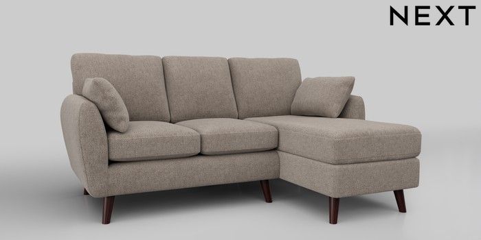 6.12.1 Buy Wilson Small Sofa Chaise - Right Hand Chunky Chenille Light Dove Retro Tapered - Dark Brown from the Next UK online shop Click here to use our accessible website