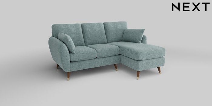 6.12.1 Buy Wilson Small Sofa Chaise - Right Hand Chunky Chenille Light Teal Green Low Retro Tapered Metal Cap - Mid from the Next UK online shop Click here to use our accessible website