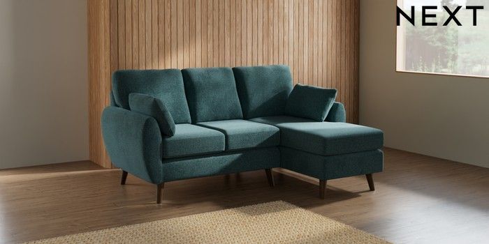 7.3.1 Buy Wilson Small Sofa Chaise - Right Hand Chunky Chenille Mid Teal Green Retro Tapered - Mid from the Next UK online shop Click here to use our accessible website
