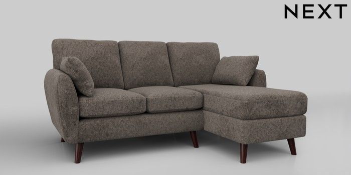 6.12.1 Buy Wilson Small Sofa Chaise - Right Hand Chunky Chenille Mink Brown Retro Tapered - Dark Brown from the Next UK online shop Click here to use our accessible website