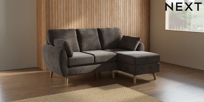7.2.10 Buy Wilson Small Sofa Chaise - Right Hand Chunky Chenille Mink Brown Retro Tapered - Light from the Next UK online shop Click here to use our accessible website