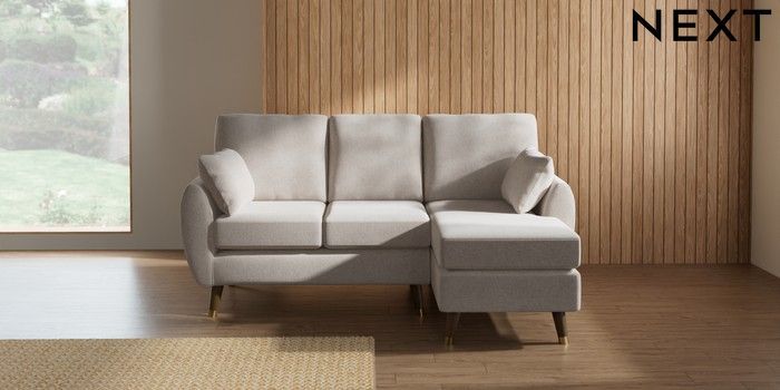 7.3.1 Buy Wilson Small Sofa Chaise - Right Hand Chunky Chenille Oyster Low Retro Tapered Metal Cap - Mid from the Next UK online shop