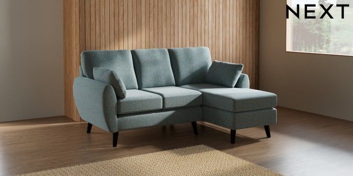 7.2.10 Buy Wilson Small Sofa Chaise - Right Hand Chunky Marl Mid Blue Retro Tapered - Dark from the Next UK online shop Click here to use our accessible website