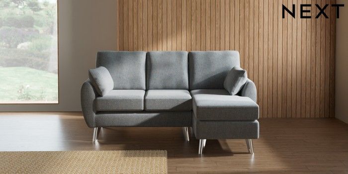 7.3.1 Buy Wilson Small Sofa Chaise - Right Hand Chunky Marl Mid Grey Metal Tapered - Chrome from the Next UK online shop
