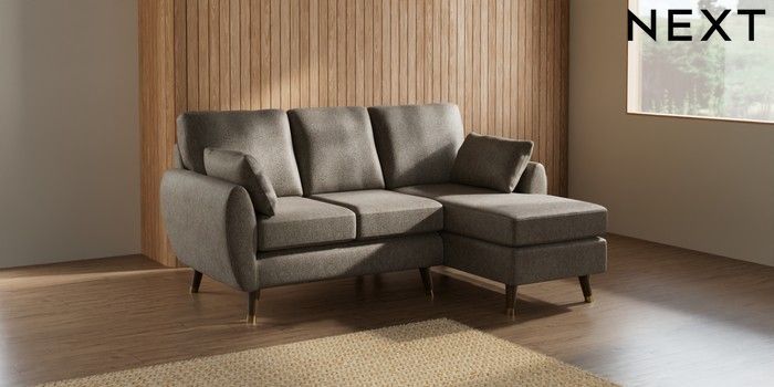 7.3.1 Buy Wilson Small Sofa Chaise - Right Hand Cotswold Chenille Mid Mink Brown Low Retro Tapered Metal Cap - Mid from the Next UK online shop Click here to use our accessible website
