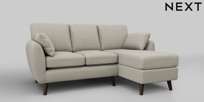 6.12.1 Buy Wilson Small Sofa Chaise - Right Hand Chunky Texture Oyster Retro Tapered - Dark Brown from the Next UK online shop Click here to use our accessible website