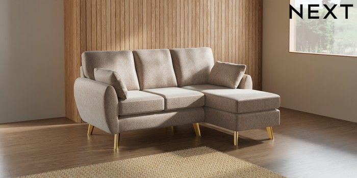 7.3.1 Buy Wilson Small Sofa Chaise - Right Hand Cotswold Chenille Light Natural Metal Tapered - Gold from the Next UK online shop Click here to use our accessible website