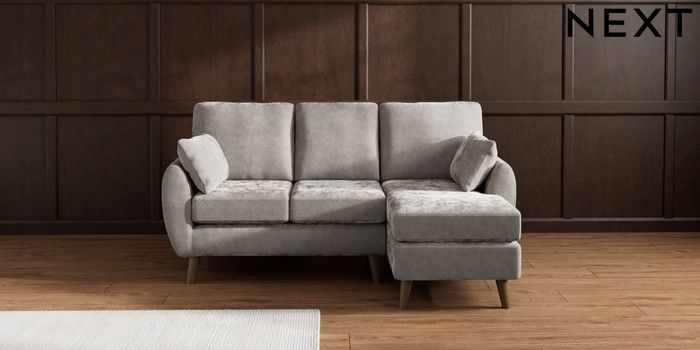 7.3.1 Buy Wilson Small Sofa Chaise - Right Hand Distressed Velour French Grey Retro Tapered - Mid from the Next UK online shop Click here to use our accessible website