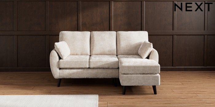 7.3.1 Buy Wilson Small Sofa Chaise - Right Hand Distressed Velour Mid Natural Retro Tapered - Dark from the Next UK online shop
