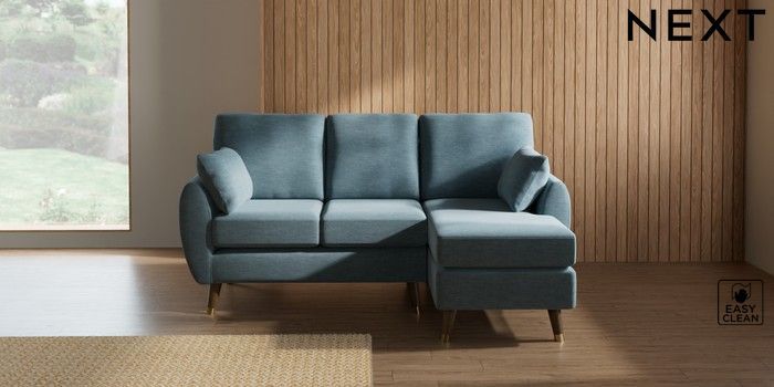 7.3.1 Buy Wilson Small Sofa Chaise - Right Hand Fine Chenille Easy Clean Mid Blue Low Retro Tapered Metal Cap - Mid from the Next UK online shop Click here to use our accessible website