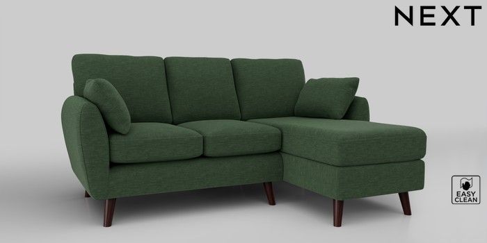 6.12.1 Buy Wilson Small Sofa Chaise - Right Hand Fine Chenille Easy Clean Mid Khaki Green Retro Tapered - Dark Brown from the Next UK online shop Click here to use our accessible website
