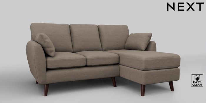 6.12.1 Buy Wilson Small Sofa Chaise - Right Hand Fine Chenille Easy Clean Mid Taupe Brown Retro Tapered - Dark Brown from the Next UK online shop Click here to use our accessible website