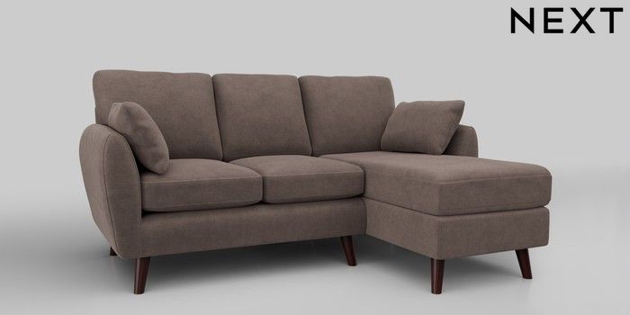 6.12.1 Buy Wilson Small Sofa Chaise - Right Hand Luxe Chenille Mink Brown Retro Tapered - Dark Brown from the Next UK online shop Click here to use our accessible website