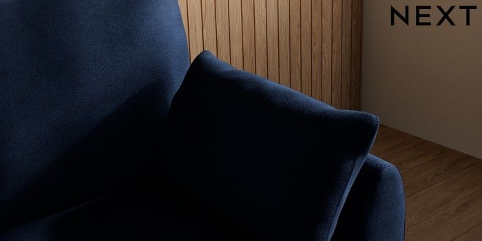 7.3.1 Buy Wilson Small Sofa Chaise - Right Hand Luxe Chenille Navy Blue Retro Tapered - Light from the Next UK online shop