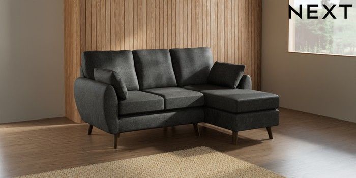 7.2.10 Buy Wilson Small Sofa Chaise - Right Hand Plush Chenille Dark Grey Retro Tapered - Mid from the Next UK online shop Click here to use our accessible website