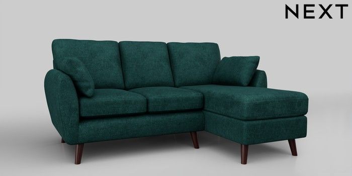 6.12.1 Buy Wilson Small Sofa Chaise - Right Hand Plush Chenille Dark Teal Green Retro Tapered - Dark Brown from the Next UK online shop Click here to use our accessible website