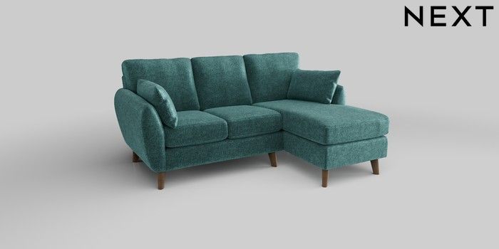 6.12.1 Buy Wilson Small Sofa Chaise - Right Hand Plush Chenille Dark Teal Green Retro Tapered - Mid from the Next UK online shop Click here to use our accessible website