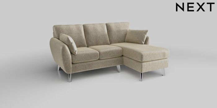 6.12.1 Buy Wilson Small Sofa Chaise - Right Hand Plush Chenille Light Natural Metal Tapered - Chrome from the Next UK online shop Click here to use our accessible website