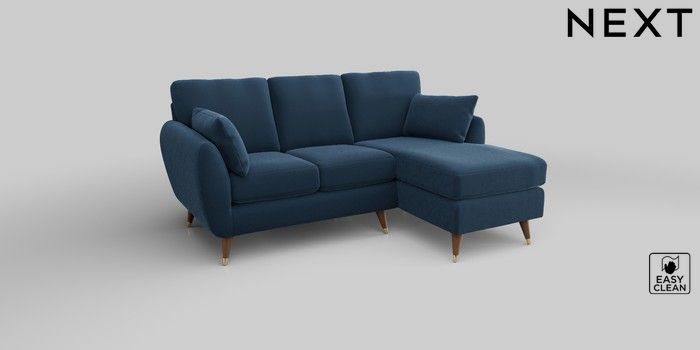 6.12.1 Buy Wilson Small Sofa Chaise - Right Hand Plush Velvet Easy Clean Airforce Blue Low Retro Tapered Metal Cap - Mid from the Next UK online shop Click here to use our accessible website