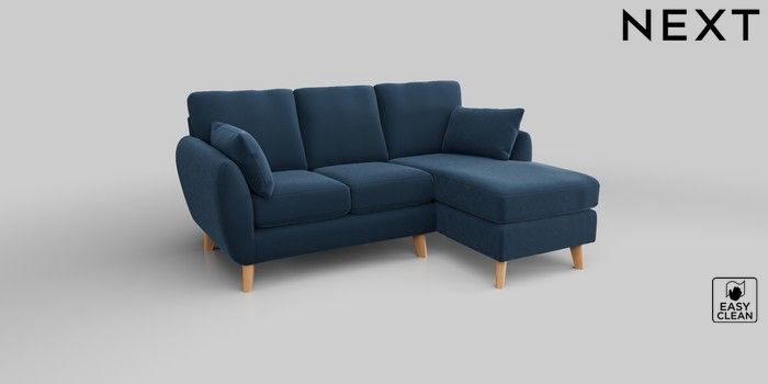 6.12.1 Buy Wilson Small Sofa Chaise - Right Hand Plush Velvet Easy Clean Airforce Blue Retro Tapered - Light from the Next UK online shop Click here to use our accessible website