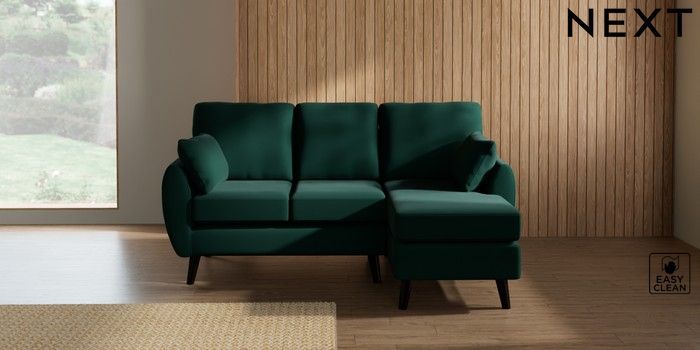 7.3.1 Buy Wilson Small Sofa Chaise - Right Hand Plush Velvet Easy Clean Bottle Green Retro Tapered - Dark from the Next UK online shop