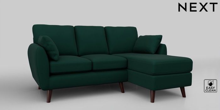 6.12.1 Buy Wilson Small Sofa Chaise - Right Hand Plush Velvet Easy Clean Bottle Green Retro Tapered - Dark Brown from the Next UK online shop Click here to use our accessible website