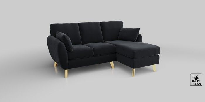 6.12.1 Buy Wilson Small Sofa Chaise - Right Hand Plush Velvet Easy Clean Charcoal Grey Metal Tapered - Gold from the Next UK online shop Click here to use our accessible website