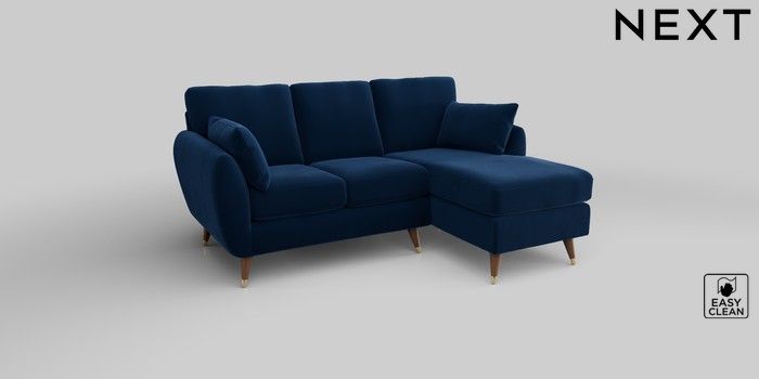 6.12.1 Buy Wilson Small Sofa Chaise - Right Hand Plush Velvet Easy Clean Navy Blue Low Retro Tapered Metal Cap - Mid from the Next UK online shop Click here to use our accessible website