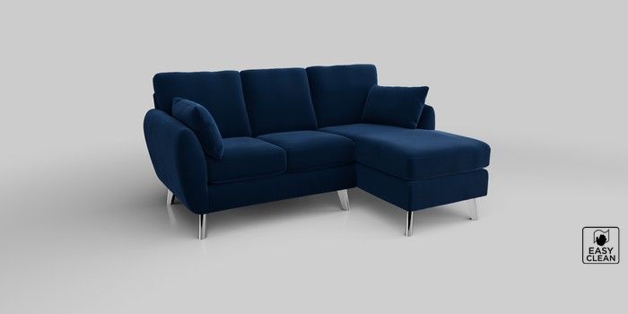 6.12.1 Buy Wilson Small Sofa Chaise - Right Hand Plush Velvet Easy Clean Navy Blue Metal Tapered - Chrome from the Next UK online shop Click here to use our accessible website