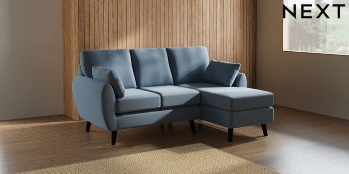 7.3.1 Buy Wilson Small Sofa Chaise - Right Hand Relaxed Linen Look Mid Blue Retro Tapered - Dark from the Next UK online shop Click here to use our accessible website