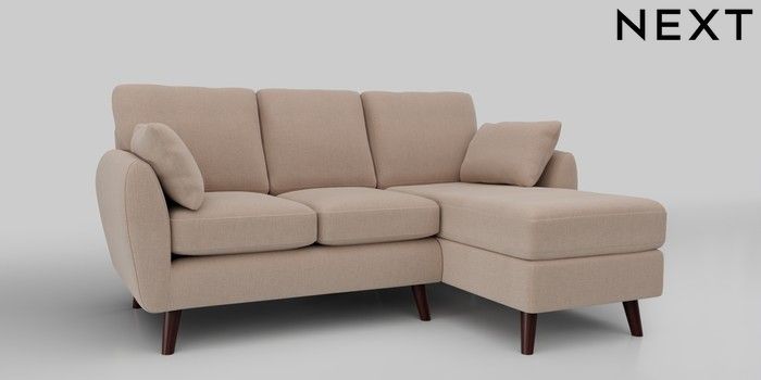 6.12.1 Buy Wilson Small Sofa Chaise - Right Hand Relaxed Linen Look Mid Natural Retro Tapered - Dark Brown from the Next UK online shop Click here to use our accessible website