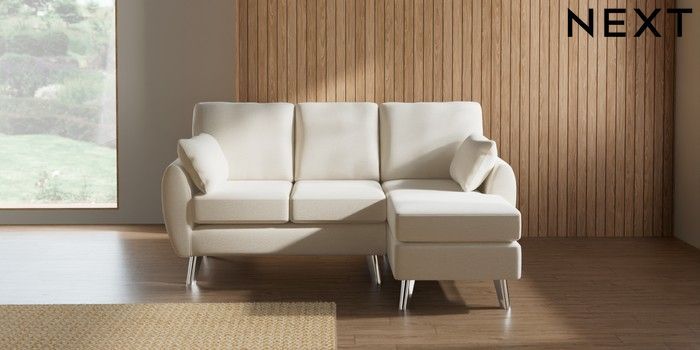 7.3.1 Buy Wilson Small Sofa Chaise - Right Hand Ripple Chenille Oyster Metal Tapered - Chrome from the Next UK online shop Click here to use our accessible website