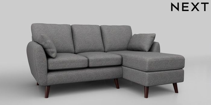 6.12.1 Buy Wilson Small Sofa Chaise - Right Hand Studio Chenille Mid Grey Retro Tapered - Dark Brown from the Next UK online shop Click here to use our accessible website