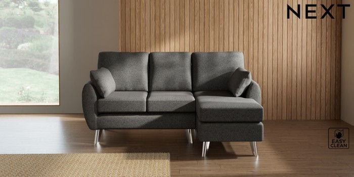 7.3.1 Buy Wilson Small Sofa Chaise - Right Hand Tweedy Blend Easy Clean Dark Grey Metal Tapered - Chrome from the Next UK online shop Click here to use our accessible website
