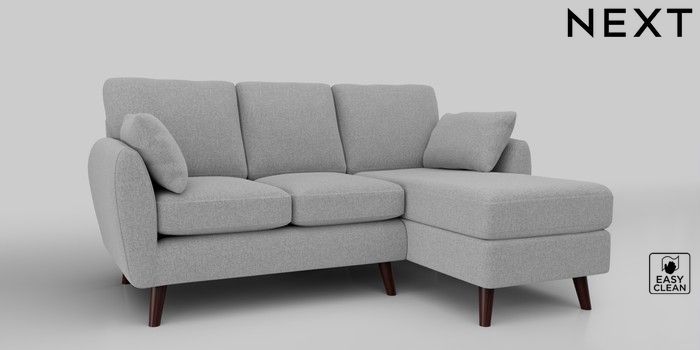 6.12.1 Buy Wilson Small Sofa Chaise - Right Hand Tweedy Blend Easy Clean Light Silver Grey Retro Tapered - Dark Brown from the Next UK online shop Click here to use our accessible website