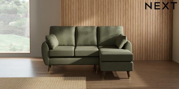 7.3.1 Buy Wilson Small Sofa Chaise - Right Hand Tweedy Chenille Mid Moss Green Low Retro Tapered Metal Cap - Mid from the Next UK online shop