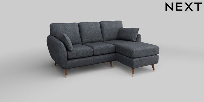 6.12.1 Buy Wilson Small Sofa Chaise - Right Hand Tweedy Chenille Navy Blue Low Retro Tapered Metal Cap - Mid from the Next UK online shop Click here to use our accessible website