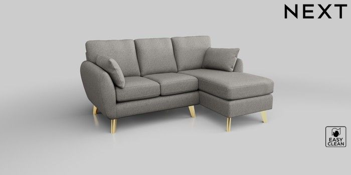 6.12.1 Buy Wilson Small Sofa Chaise - Right Hand Woven Chenille Easy Clean Light Grey Metal Tapered - Gold from the Next UK online shop Click here to use our accessible website