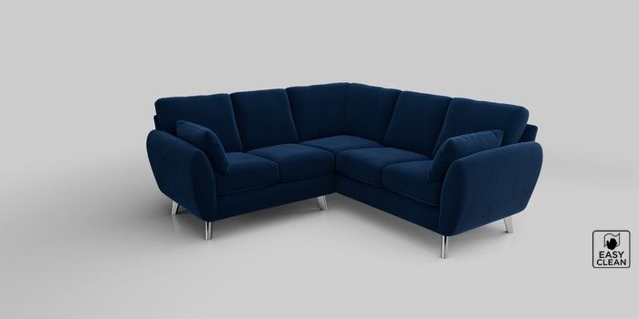 6.12.1 Buy Wilson Small Corner Sofa - Universal Plush Velvet Easy Clean Navy Blue Metal Tapered - Chrome from the Next UK online shop Click here to use our accessible website