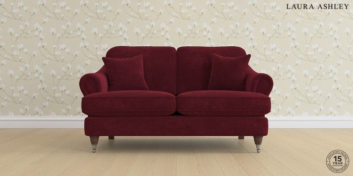 7.0.3 Buy Ambersham by Laura Ashley 2 Seater Small Sofa Alwyn Velvet Burgundy Red Low Chrome Castor - Chestnut from the Laura Ashley online shop Click here to use our website with more accessibility support, for example screen readers