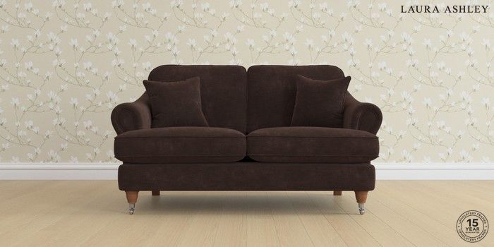 7.0.3 Buy Ambersham by Laura Ashley 2 Seater Small Sofa Alwyn Velvet Chocolate Brown Low Chrome Castor - Teak from the Laura Ashley online shop Click here to use our website with more accessibility support, for example screen readers