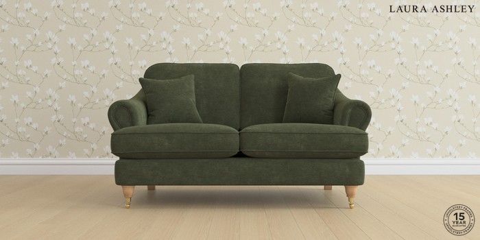 7.0.3 Buy Ambersham by Laura Ashley 2 Seater Small Sofa Alwyn Velvet Ivy Green Low Brass Castor - Light Oak from the Laura Ashley online shop Click here to use our website with more accessibility support, for example screen readers