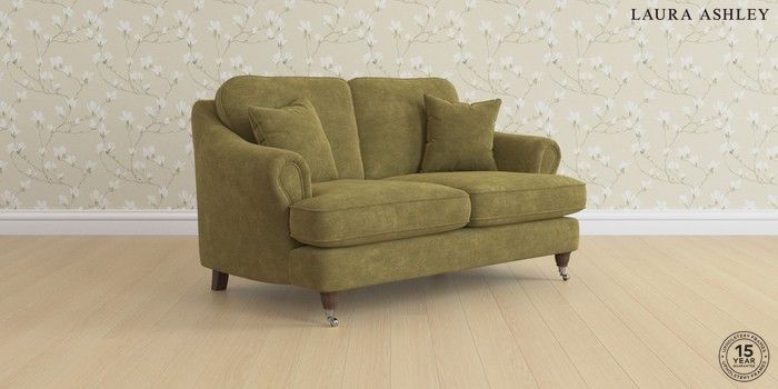 7.0.3 Buy Ambersham by Laura Ashley 2 Seater Small Sofa Alwyn Velvet Olive Green Low Chrome Castor - Chestnut from the Laura Ashley online shop Click here to use our website with more accessibility support, for example screen readers