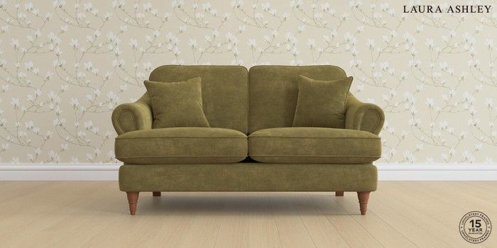 7.0.3 Buy Ambersham by Laura Ashley 2 Seater Small Sofa Alwyn Velvet Olive Green Low Turned - Teak from the Laura Ashley online shop Click here to use our website with more accessibility support, for example screen readers